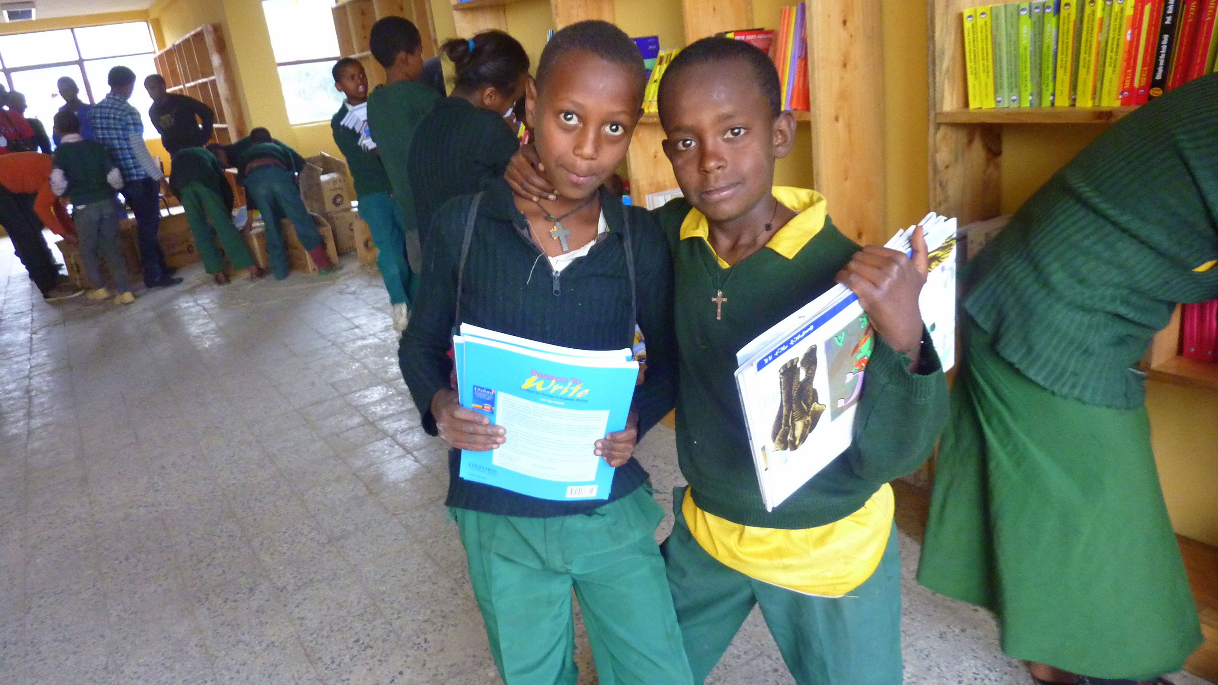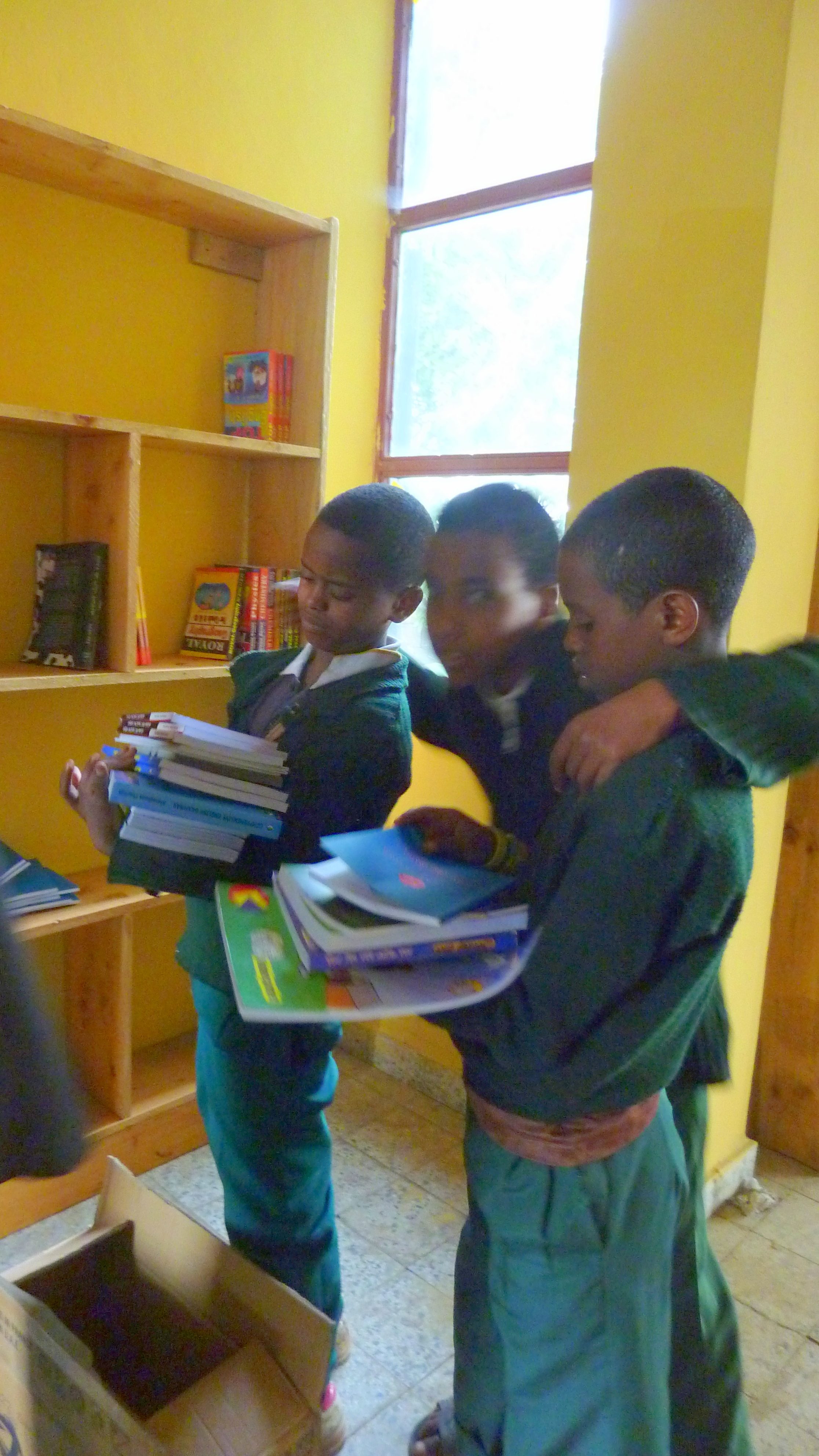 Next came putting books on shelves and enjoying the books!