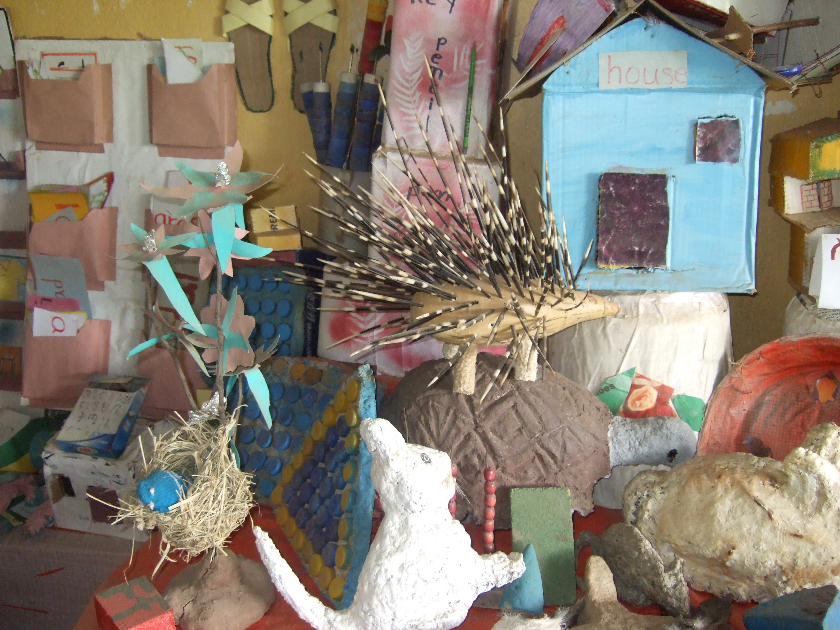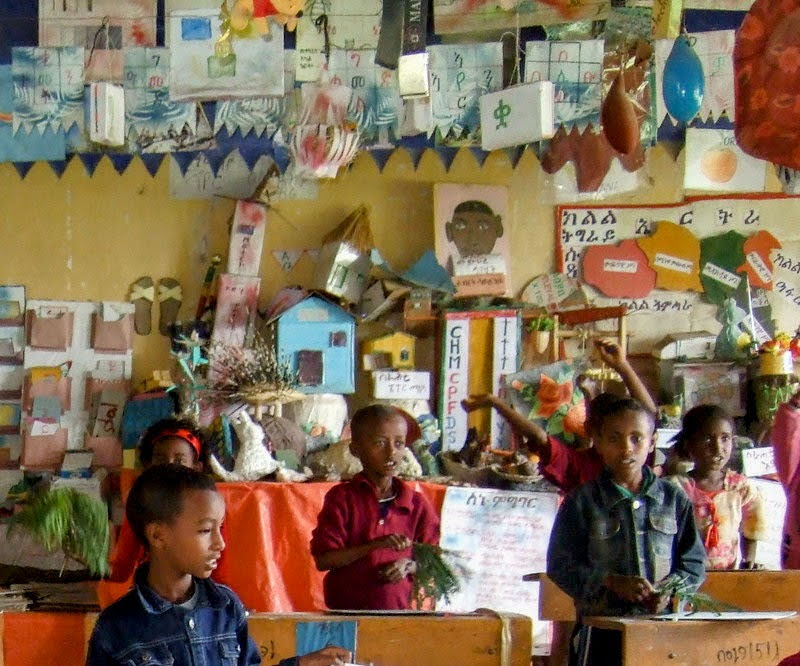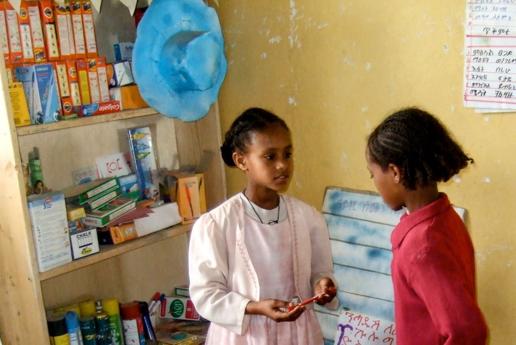 Within this Model School however and despite lack of resources, we came across Tirewerk Zewdie who was the Model Teacher! With few books and no practical teaching aids or resources, this teacher had been amazingly innovative. Along with her students she had literally created her own creative teaching aids – all beautifully handcrafted by the students themselves! A plant for example created from green and yellow plastic – a unique form of recycling. Because the class lacked textbooks, this teacher taught English using practical methods – with a model shop and hospital again using student created props. The students engaged in role playing which made learning English not only educational but fun too.