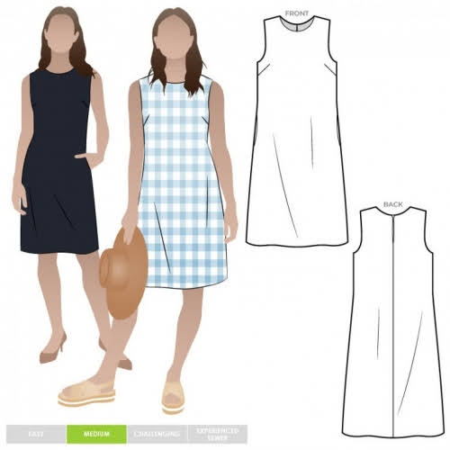 For now we are offering classic A line dresses (short sleeves or sleeveless) and skirts (slightly flared but not wide circle flares) with side or back zips on dresses and skirts and we can also make straight skirts and dresses (sample drawing illustrations as examples see below). Or wrap free size skirts…..