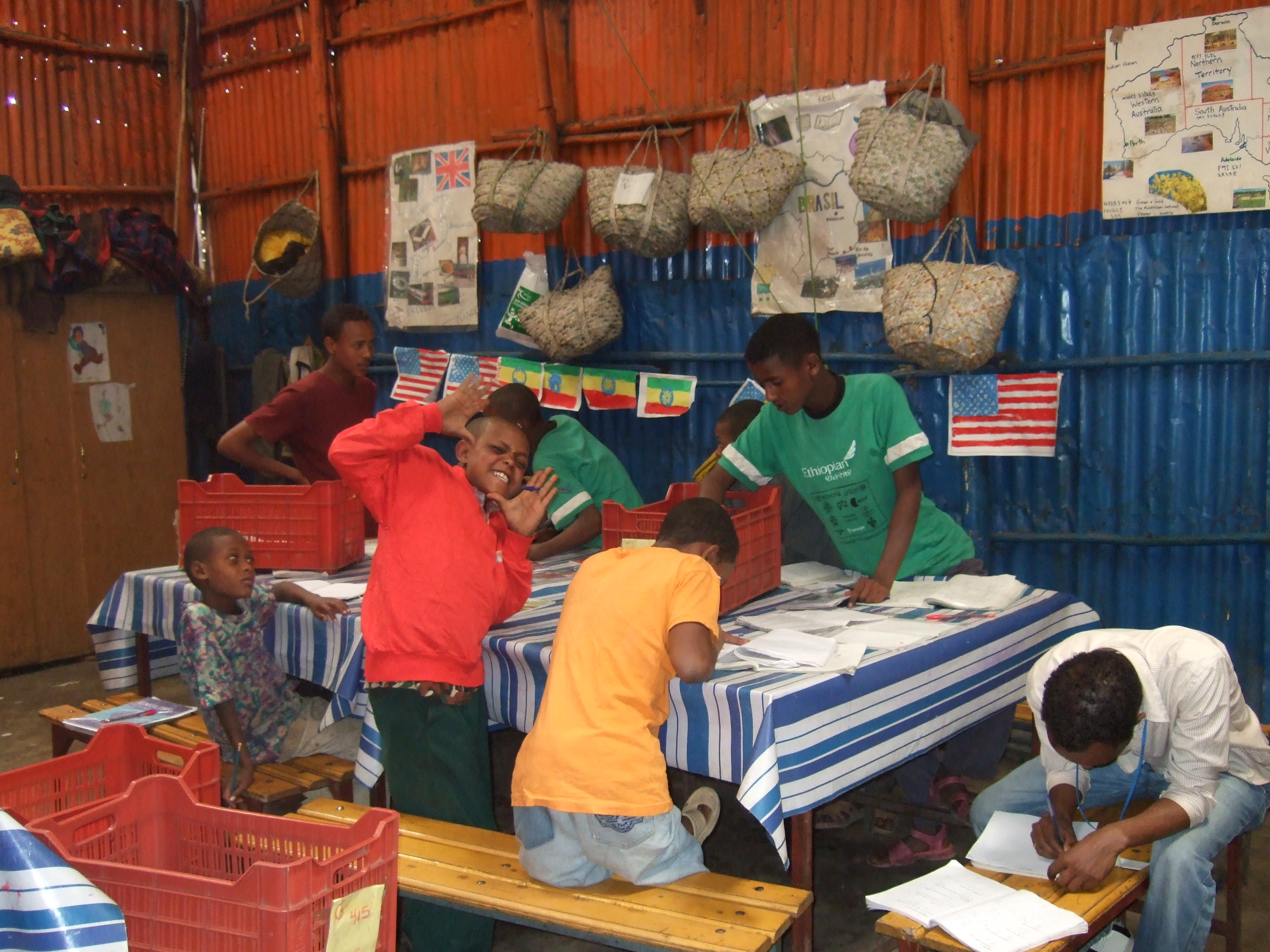 Retrak is located in the heart of the Addis Ababa Mercato (reputedly the largest market place of Africa) which is also one of the poorest and most densely populated areas of the city. Retrak caters specifically to boys on the street – who arrive by bus from the provinces expecting to find the streets of Addis paved in gold…..This small center is literally no more than a corrugated iron shelter with only the most basic amenities but offers a welcome refuge for these lost boys many of whom have escaped abusive homes. Retrak has a primary goal of repatriating these boys where possible or fostering them if the home life is unsuitable. On their road to recovery Retrake ensures that they ultimately enroll back in school and provide basic education until this is possible.